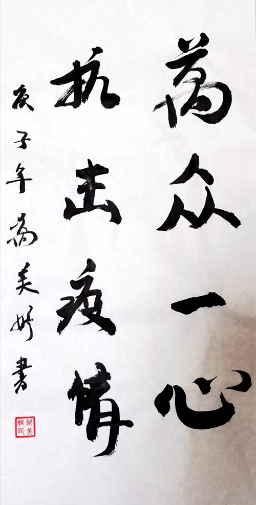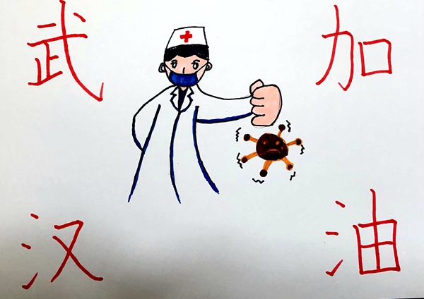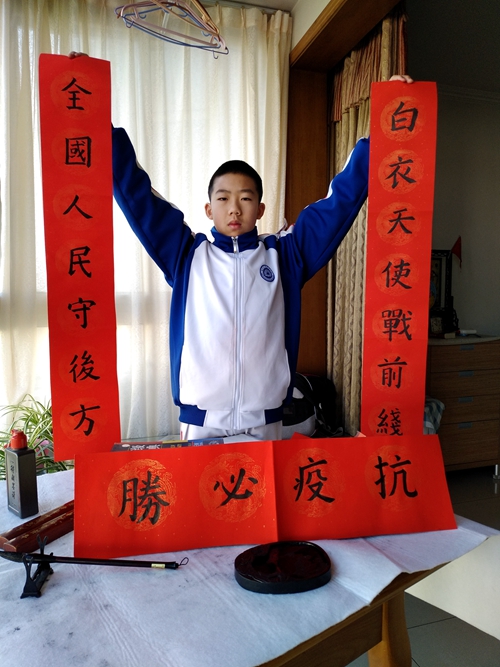 启元学校-六年级(2)班 胡星承 书法:抗疫必胜