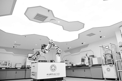 10月21日,中国科学技术大学科研团队研发的“机器化学家”在进行化学实验。新华社发