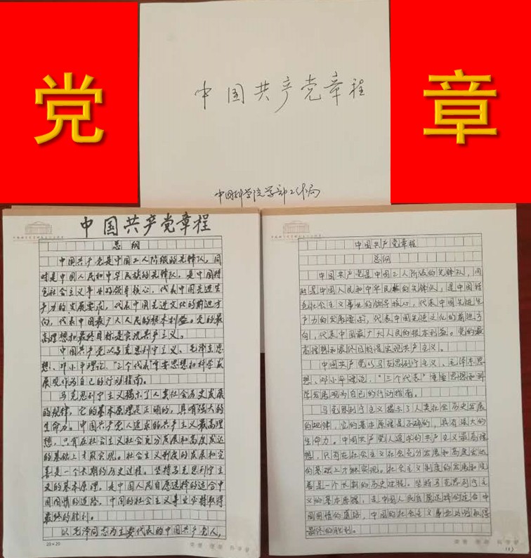 党章全文共一万七千余字,各党小组第一时间落实支部要求,对抄学任务进行了讨论分工。各位党员利用工作之余,以钢笔、中性笔、毛笔等方式,使用样式统一的稿纸对党章进行了抄写。在二十余天的抄学活动中,全体党员通过一字一句阅读,一笔一划书写,一章一段理解,进一步提高了学习党章、遵守党章、维护党章的自觉性,增强了宗旨意识、大局意识和公仆意识,提升了党性修养和党纪意识。许多党员还结合抄学活动,撰写了体会感言,并提出了做合格党员的具体要求与表现。