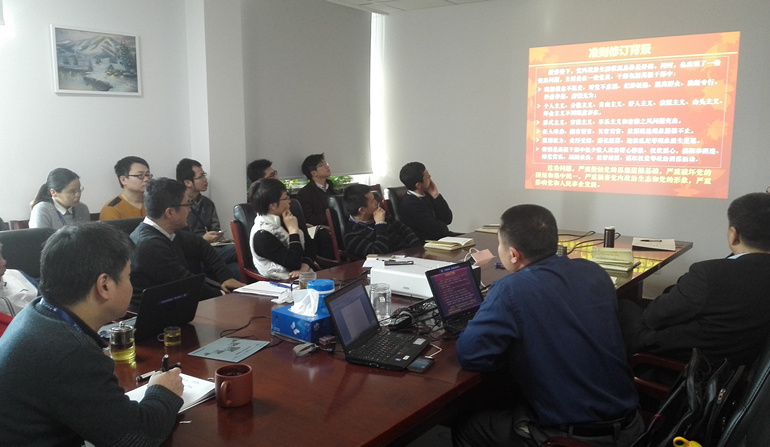 发展规划局综合处处长叶海华作了主题报告,总结了“两学一做”学习教育活动全年的进展情况,并系统介绍了《习近平总书记关于科技创新论述摘编》、《中国共产党廉洁自律准则》、《中国共产党纪律处分条例》等的重点内容。支部党员认真学习,并围绕报告进行了讨论。
