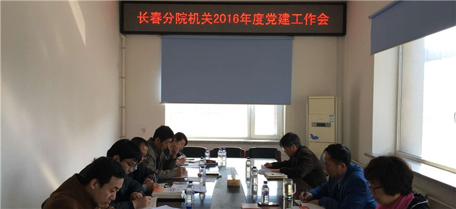 长春分院机关党委组织召开了党委扩大会议,部署2016年分院机关党建工作及“两学一做”学习教育。长春分院党组书记、副院长甘建国,党组副书记、纪检组长李冰出席会议,长春分院机关党委委员、纪委委员及党支部书记参加了会议。