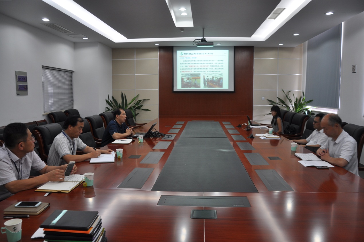 南京分院分党组副书记杨涛一行到苏州生物医学工程技术研究所督促检查“两学一做”学习教育和纪监审工作开展情况。苏州医工所党委书记、副所长邓强,党委书记、纪委书记杨洪波参加了督查会议。