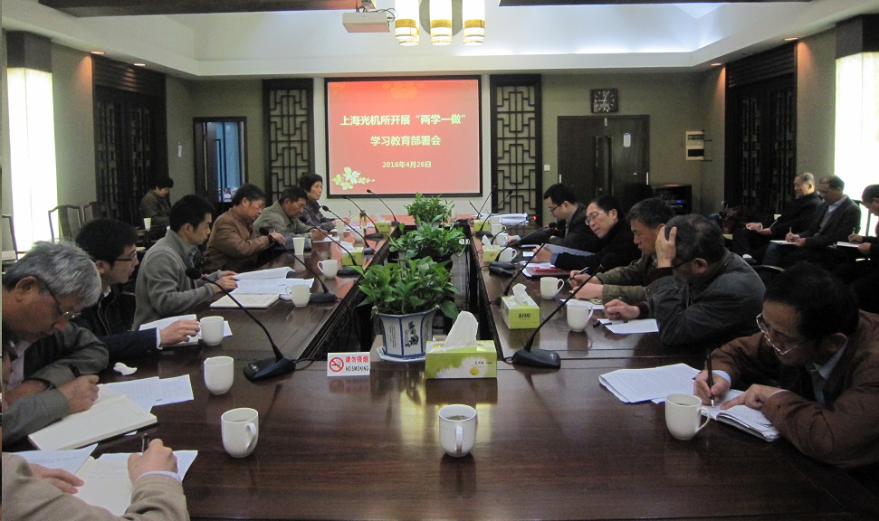 上海光学精密机械研究所“学党章党规、学系列讲话,做合格党员”(以下简称“两学一做”)学习教育部署会在溢智厅召开,所长李儒新、党委书记邵建达和全所党支部书记、副书记、支部委员等36人出席会议。邵建达主持会议。
