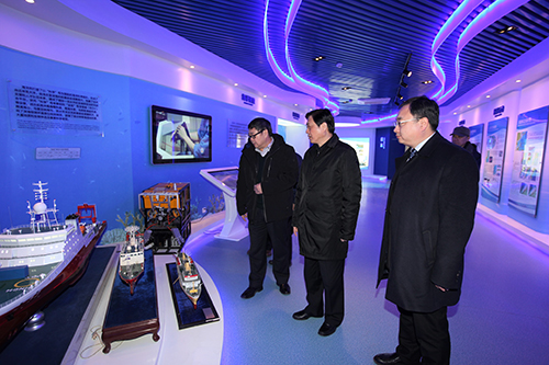 刘伟平对海洋所科研工作进展情况进行了实地调研,先后参观了率先成果展厅、海洋生态健康养殖成果、海洋科学数据中心可视化综合管理平台、海洋专项深海样品库,并对海洋所近年来在重大科研设施能力建设、深海探测与研究,以及国家重大科研项目等方面取得的成果给予肯定。刘伟平强调,要坚决贯彻落实习近平总书记对中科院提出的“三个面向”“四个率先”要求,面向世界海洋科技前沿,要力求实现并跑、在有些学科实现领跑;面向国家重大需求,要聚焦海洋强国战略和国防需求凝练突破点;面向国民经济主战场,要以地方政府经济调结构、转方式为导向,与有实力的企业合作,强化高水平科研成果转移转化,努力抓出一批在国内有影响的示范工程,同时实现研究所的可持续发展。要按照“四个率先”目标,不断提升认识水平,进一步凝练“一三五”规划、完善发展思路,把发展思路变成发展举措和科研项目,再变成科研团队的实际行动,努力产出有重要影响力的科研成果,实现创新跨越发展,努力建设国际一流的海洋科学研究机构。