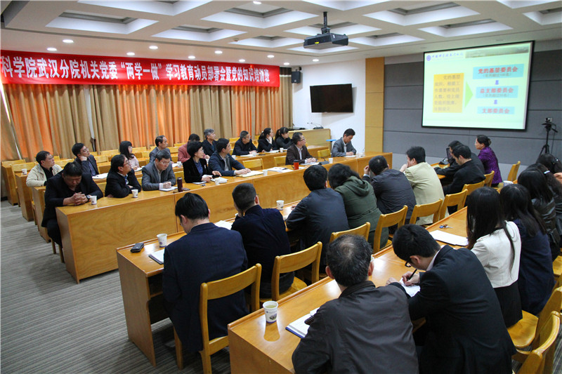 武汉分院机关党委举办“两学一做”学习教育暨党的知识培训班活动,分党组书记、副院长陈平平,副院长、机关党委书记李衡,分党组副书记、纪检组组长尚纳新出席会议,武汉分院机关全体党员,后勤、出版社、离退休支部委员参加了会议。