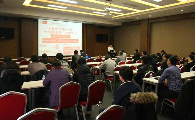 会上,党委书记王华作《学习宣传贯彻党的十八届六中全会精神》报告,报告以全会公报的十二个“关键词”为线索,介绍了党中央“四个全面”的战略布局与十八届历次全会的关系、全会提出以习近平同志为核心的党中央的重大意义、关于新形势下党内政治生活的若干准则原文、中国共产党党内监督条例原文,以及贯彻党内民主、贯彻群众路线等内容。