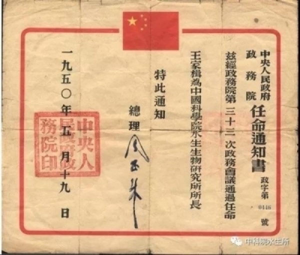 1950年,周恩来总理亲自签署任命通知书