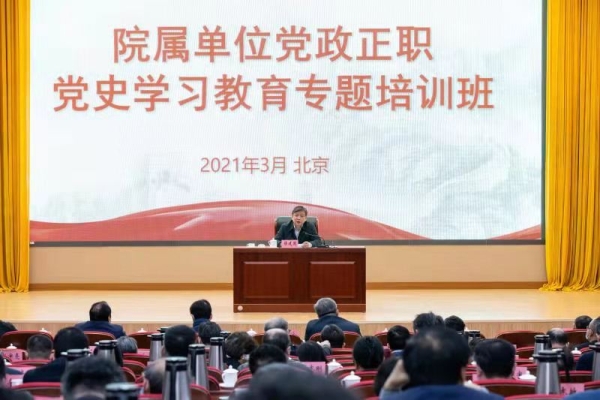 举办院属单位党政正职党史学习教育专题培训班。中科院院长、党组书记,中科院党史学习教育领导小组组长侯建国作专题辅导报告,并就全院开展党史学习教育作出再部署再推进。中科院副院长、党组副书记,中科院党史学习教育领导小组副组长阴和俊作总结讲话。中科院副秘书长、中科院党史学习教育领导小组办公室主任李和风主持培训。