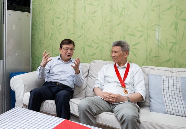 院士、大气物理研究所原所长、国家最高科学技术奖获得者曾庆存同志。侯建国为他们颁发并佩戴“光荣在党50年”纪念章,详细询问了他们的日常生活、身体情况,向他们为党和国家科技事业、为中科院改革创新发展作出的积极贡献致以崇高敬意和衷心感谢。胡启恒、曾庆存与侯建国围绕推动科技创新、院所改革发展等话题进行了亲切交流。侯建国表示,老党员、老干部是党、国家和中科院科技事业的宝贵财富,希望老同志们保重身体,相关部门要用心用情关心老党员、老干部的日常生活,政治上更加关心、生活上更加关怀、情感上更加贴近,让他们切实感受到党组织的关怀和温暖。
