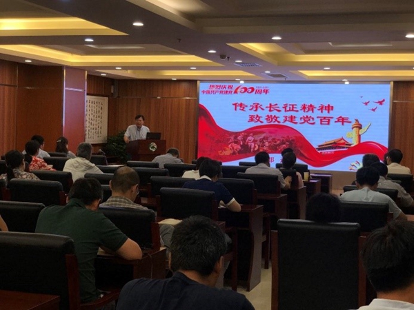 党委书记、所长邓涛为全所党员讲《传承长征精神 致敬建党百年》专题党课,回顾长征的历史,并结合研究所特色重点讲述“长征路上的科学考察”。党课提出,长征永远在路上,要缅怀革命先烈的不朽功勋,继承光荣的革命传统,弘扬伟大的长征精神,不忘初心,走好新的长征路。科研人员要学史明理、学史增信、学史崇德、学史力行,更加紧密地团结在以习近平同志为核心的党中央周围,增强“四个意识”、坚定“四个自信”、做到“两个维护”,将科学考察工作与党建工作相融合,让党旗继续在科研一线高高飘扬。