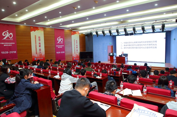 会上,中国国际经济交流中心副理事长、国务院发展研究中心原副主任王一鸣作了题为《以中国式现代化全面推进中华民族伟大复兴》的报告,从中国式现代化探索实践和创新突破的历程、推进中国式现代化面临的内外环境和挑战、新时代新征程中国式现代化的使命和任务等三方面,阐释了党的二十大报告提出的一系列新思想、新论断、新观点。报告站位高、立意新、格局大,既有理论高度又有实践总结,推动全所党员更加深入理解党的二十大精神,深刻把握中国式现代化的本质要求,更加清醒认识到科技创新在我国现代化建设全局中的核心地位和关键作用。